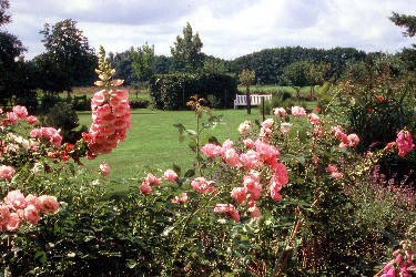 geschützte Sitzplätze inmitten von Rosensträuchern laden zum Verweilen